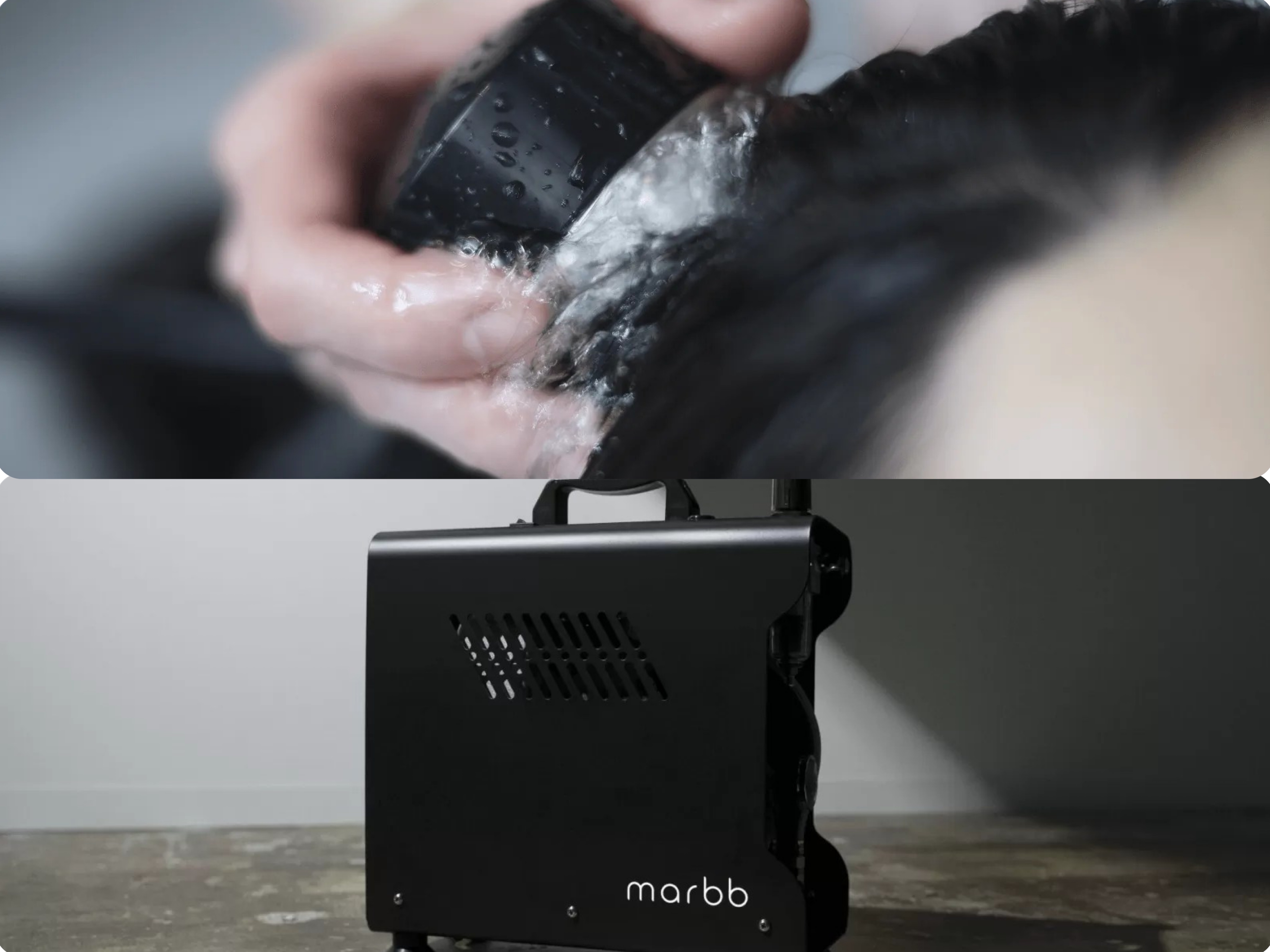 シャンプー台にマイクロバブル発生装置『marbb』を導入!シャワーの水にもこだわり、追加料金なしで体感いただけます。